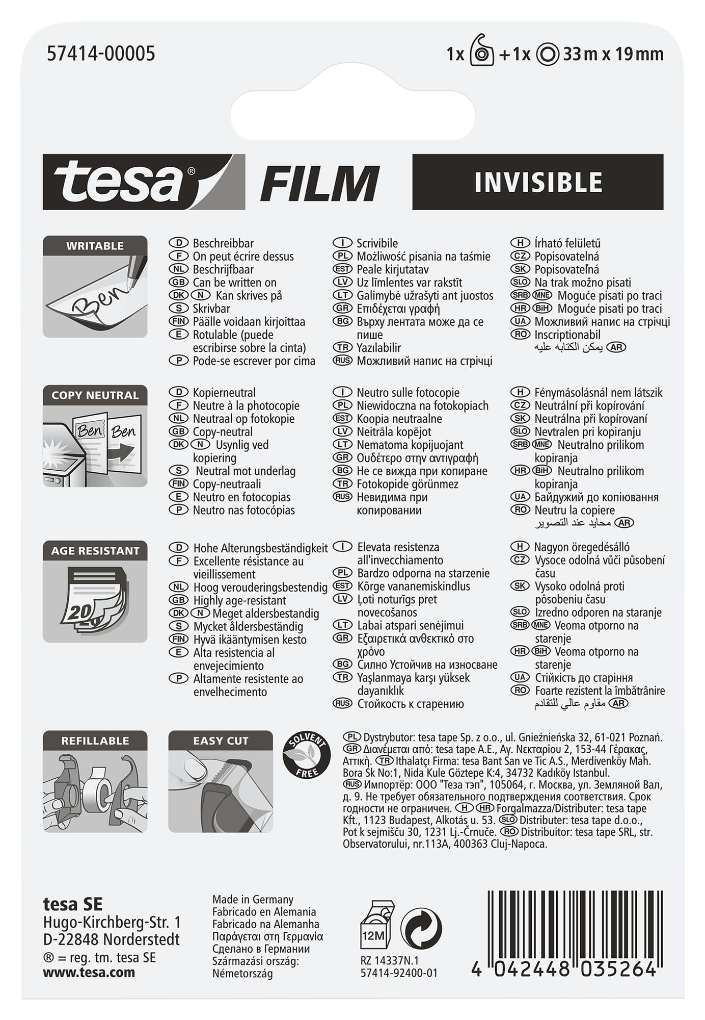Ob im Büro, zu Hause oder in der Schule – das tesafilm® invisible Klebeband ist für alle Gelegenheiten geeignet. Es lässt sich mit allen tesafilm® Abrollern verwenden und überzeugt durch seine vielseitigen Anwendungsmöglichkeiten.