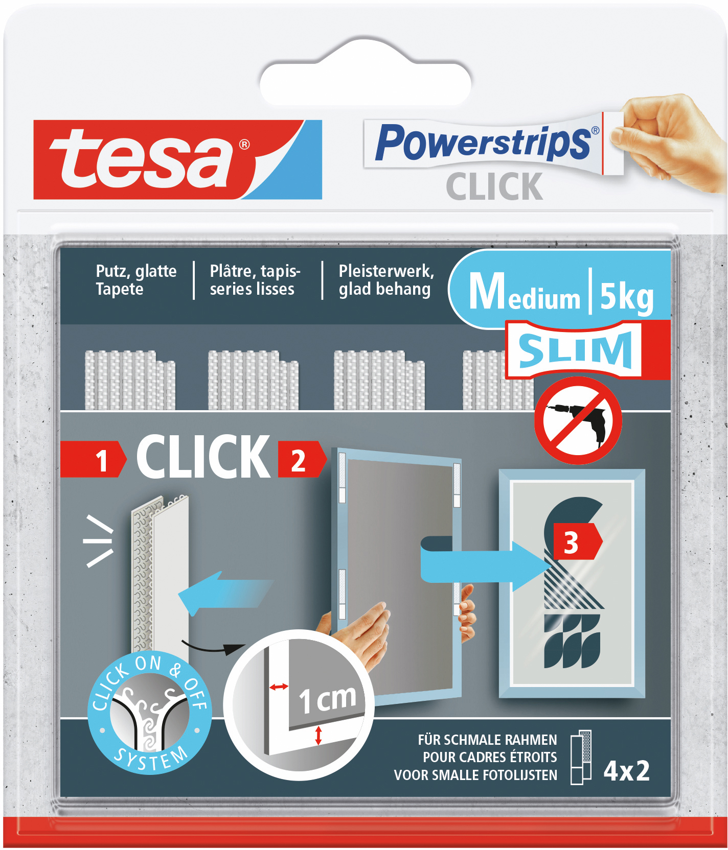 TESA Powerstrips Click Small 77721-00030 Slim, 5kg 4×2 Streifen