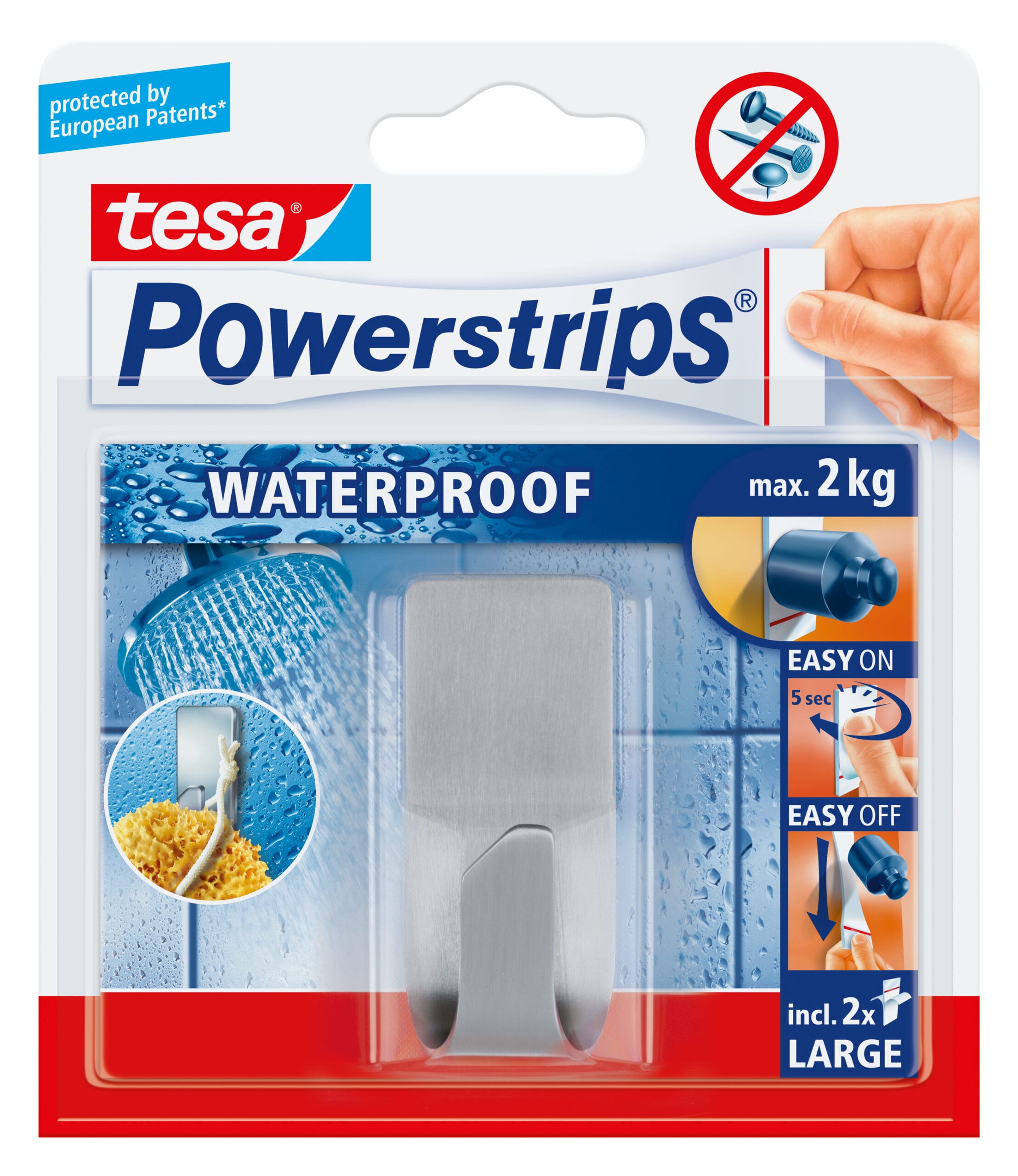 Der Wave Haken ist speziell für den Einsatz in Nassräumen konzipiert. Er haftet sowohl auf Fliesen als auch auf Glas und eignet sich daher ideal für die Verwendung im Badezimmer oder direkt unter der Dusche. Dank der tesa Powerstrips-Technologie ist das Befestigen kinderleicht und erfolgt ganz ohne Schrauben, Dübel oder Nägel.