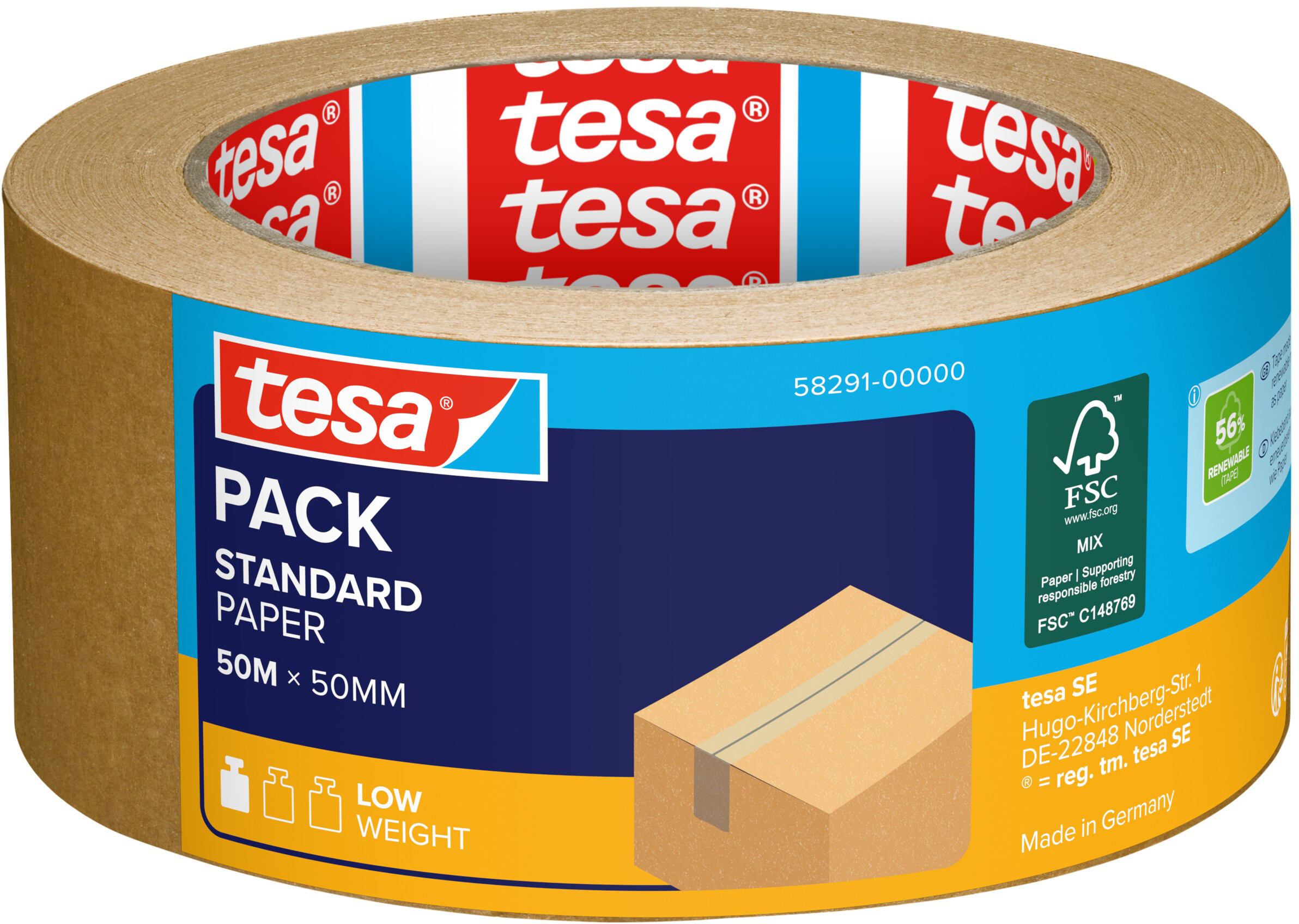 Entdecken Sie das tesapack® STANDARD PAPER, Ihr zuverlässiger Helfer beim Verpacken von leichten Paketen. Mit guter Klebeleistung und sicherem Verschluss von Paketen, ist es ideal für Zuhause und Büro. Einfach mit der Hand einzureissbar und geräuscharm abrollbar ist es komfortabel in der Anwendung. Es besteht zu 56% aus erneuerbaren Materialien, wie FSC® zertifizierten Papier (FSC® C148769). Der Rollenkern ist zu 100% recyceltem Karton. Zudem ist es recyclingfreundlich und kann gemeinsam mit dem Karton entsorgt werden (Zertifizierung nach INGEDE Methode 12). Perfekt mit allen tesapack® Handabrollern nutzbar.