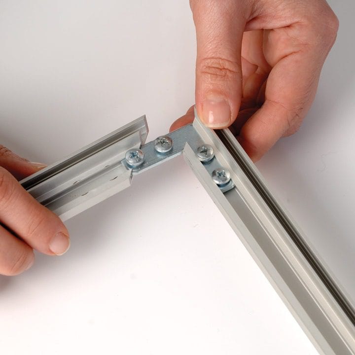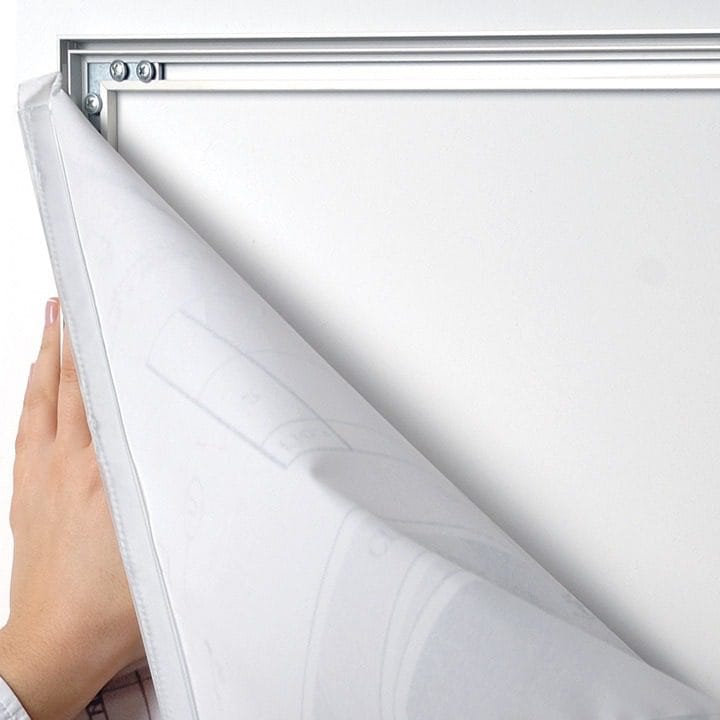 Der Textil-Spannrahmen River Maxi besticht durch sein elegantes und raffiniertes Design. Mit einem schlanken Valet-Profil von 15×22 mm werden Stoff- und Textilplakate stilvoll präsentiert, um eine harmonische Integration in jede Umgebung zu gewährleisten.
