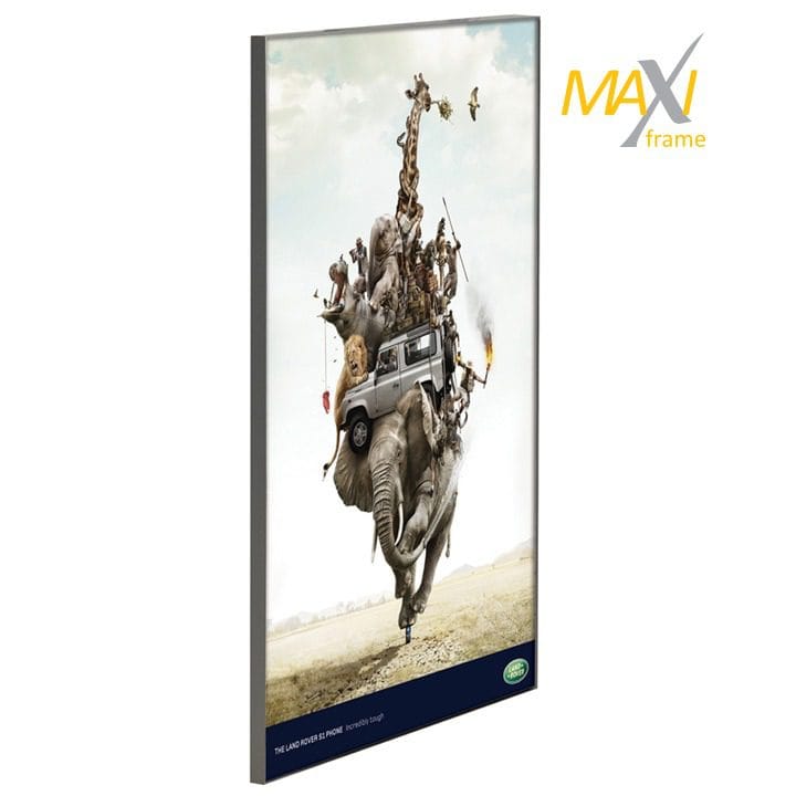 Der River Maxi wurde speziell für die effektive Darstellung von Stoff- und Textilplakaten konzipiert. Seine klare Linienführung lenkt den Fokus auf das Plakat und ermöglicht so eine deutliche und ansprechende Vermittlung Ihrer Botschaft.
