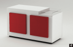 Diese moderne Theke kombiniert elegantes Weiß mit auffälligen roten Fronten, die dem Raum eine lebendige Note verleihen. Die beiden roten Fronten schaffen einen interessanten Farbkontrast und ziehen die Blicke auf sich. Die transparente Vitrine auf dem Top der Theke bietet eine perfekte Möglichkeit, Ihre Produkte stilvoll zu präsentieren und gleichzeitig vor unbefugtem Zugriff zu schützen.