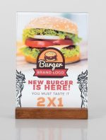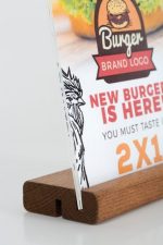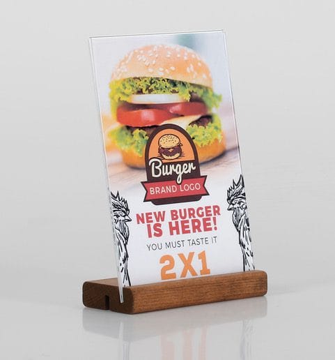 Der Kartenhalter aus hochwertigem Buchenholz, gebeizt für eine ansprechende Optik, ist die ideale Lösung, um Ihre Informationen elegant und professionell zu präsentieren. Die transparente Plexitasche ermöglicht die stilvolle Darstellung von Speisekarten, Preislisten und anderen wichtigen Dokumenten und verleiht Ihrem Material einen erstklassigen Auftritt.