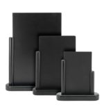 Mit der doppelseitigen Kreidetafelschreibfläche des Elite Schwarzen Tischaufstellers können Sie Ihre Botschaften flexibel gestalten und bei Bedarf einfach umdrehen. Ein zusätzlicher Satz von 3 doppelseitigen Kreidetafelschreibflächen bietet noch mehr Flexibilität für Ihre Präsentationen.