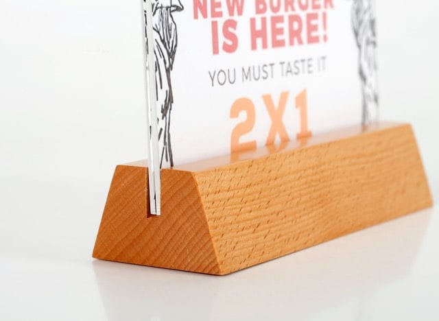 Stilvolle Präsentation mit Tischaufsteller aus Buche roh lackiert
