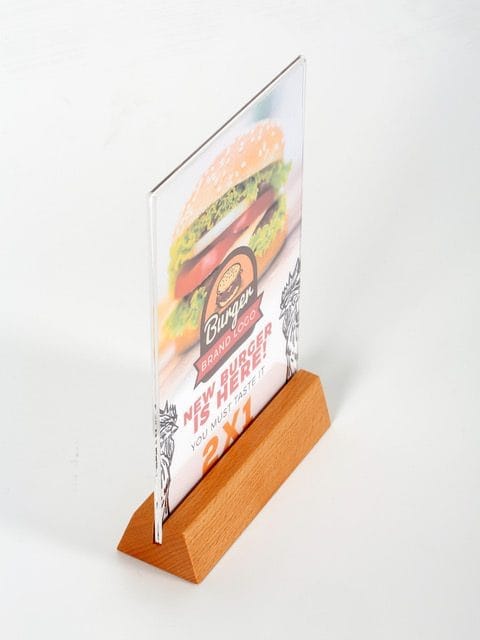 Für eine hochwertige und flexible Lösung zur Präsentation Ihrer Speisekarten und Preislisten sind unsere Tischaufsteller aus Buche roh lackiert mit transparenter Plexitasche die perfekte Wahl. Kontaktieren Sie uns noch heute, um weitere Informationen zu erhalten und Ihre individuellen Anforderungen zu besprechen. Wir unterstützen Sie gerne bei der Auswahl des idealen Tischaufstellers für Ihre Präsentationsbedürfnisse.