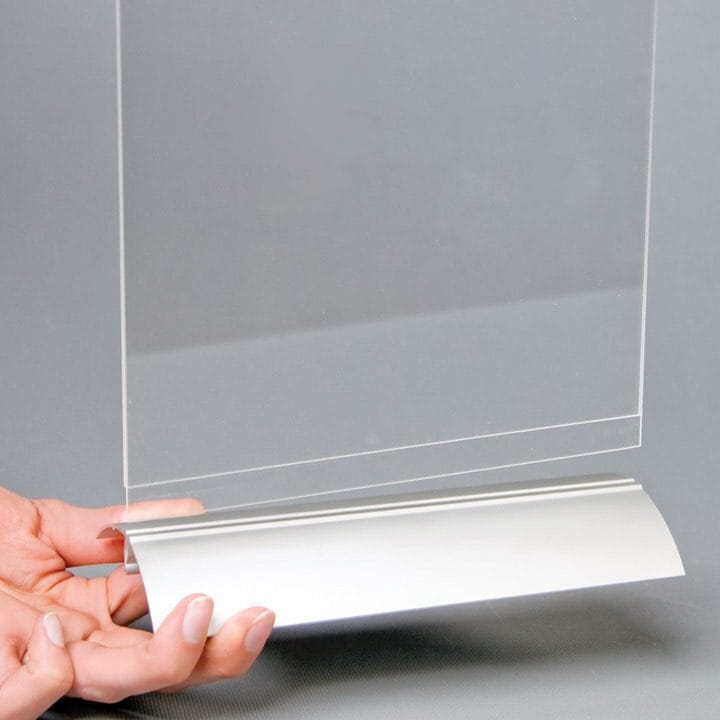 Unsere Tischaufsteller aus Aluminium sind äußerst vielseitig einsetzbar und können an verschiedenen Orten platziert werden. Egal ob auf Tischen, Theken oder Empfangstresen – dieser Prospekthalter zieht sofort die Blicke auf sich und lenkt die Aufmerksamkeit auf Ihre wichtigen Informationen. Die transparente Plexitasche eignet sich besonders gut für die Präsentation von Speisekarten, Preislisten und anderen Inhalten, die Sie Ihren Kunden und Gästen zugänglich machen möchten.