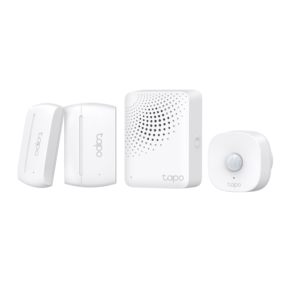 - T100 Smart Hub: Das Herzstück Ihres Smart-Home-Systems, das als zentrale Steuerungseinheit fungiert. Der Hub verbindet alle Sensoren miteinander und ermöglicht die einfache Verwaltung über die Tapo-App.