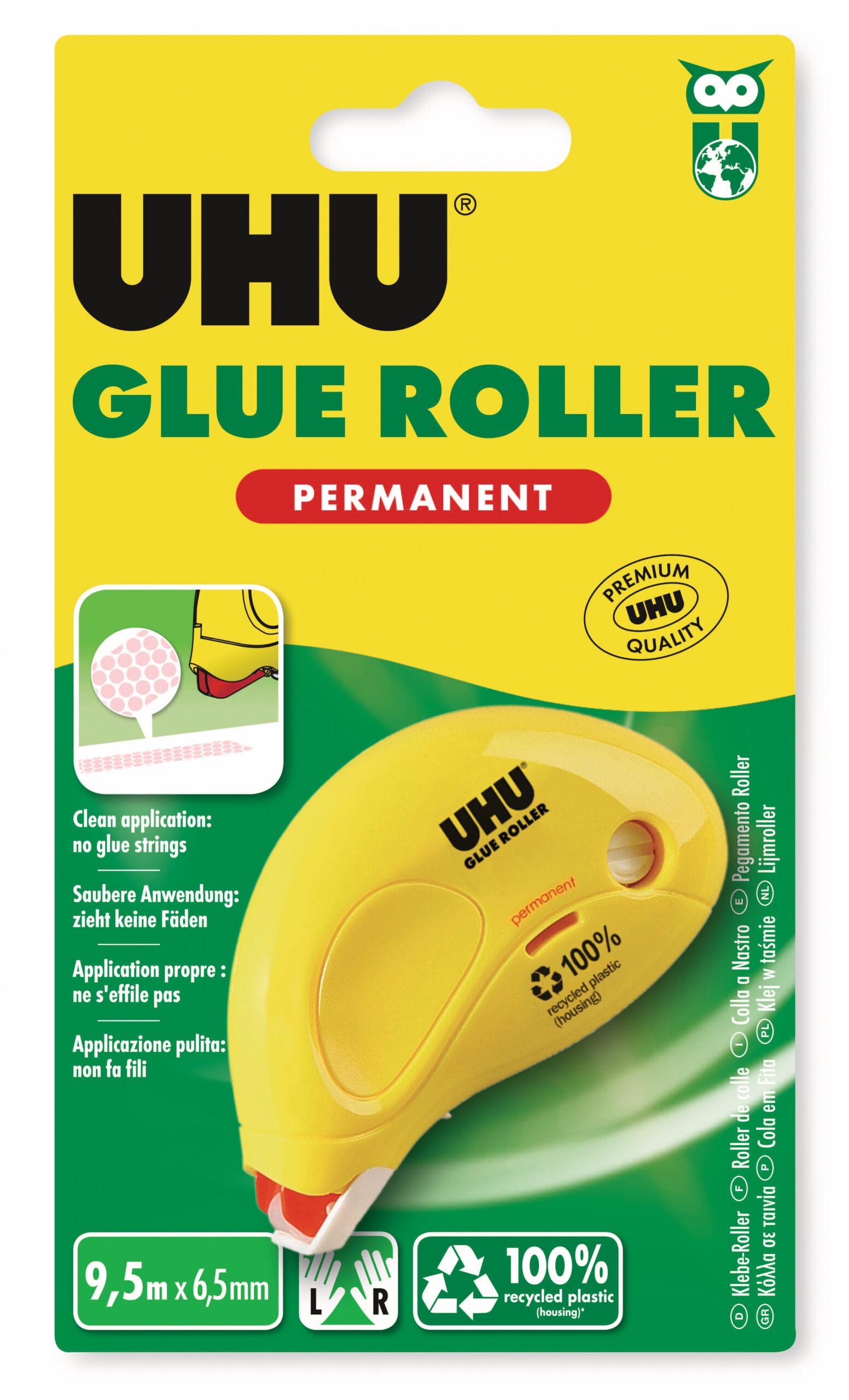 UHU legt Wert auf Nachhaltigkeit, daher besteht der Kleberoller aus 80% recyceltem Kunststoff, was einen Beitrag zum Umweltschutz leistet.