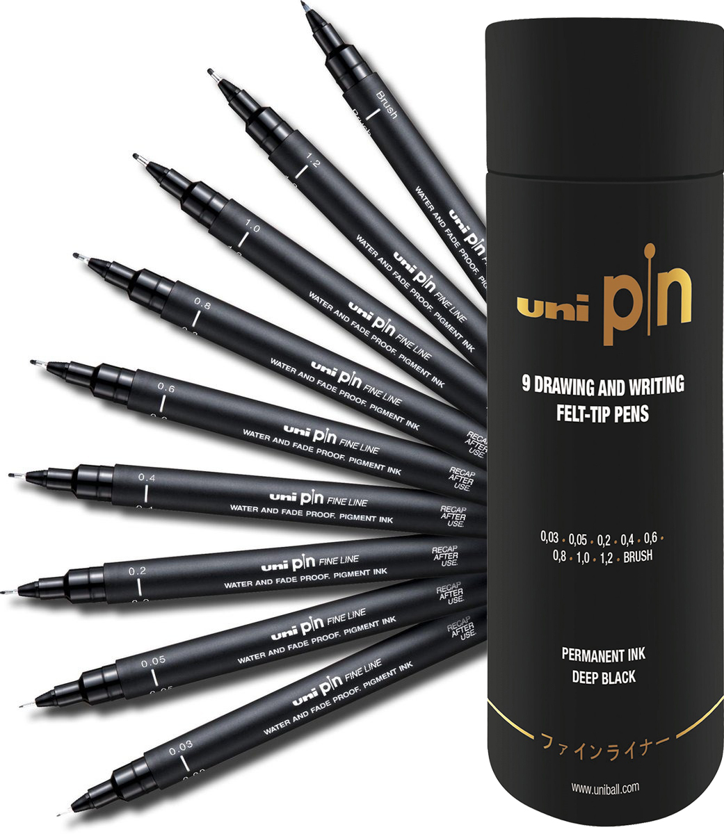 Das UNI-BALL Fineliner Pin Set PIN2009P enthält 9 schwarze Fineliner in einer praktischen Tube, ideal für präzises Schreiben und Zeichnen. Perfekt für Künstler und Schüler!