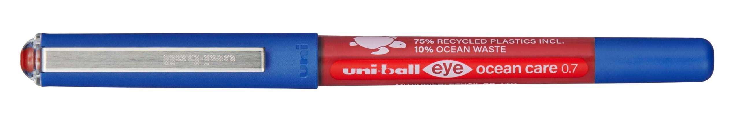 Der OCEAN CARE Tintenroller vereint umweltbewusstes Handeln mit Schreibgenuss. Mehr als 75 % des Kunststoffs, aus dem dieser Tintenroller besteht, sind recycelt, wovon sogar 10 % aus dem Ozean stammen. Mit der gleichen hochwertigen Qualität wie der originale uni-ball eye liegt hier der Fokus klar auf der Reinigung unserer Meere. Von der Unterstützung der Meeresbewohner bis hin zu den Inselgemeinschaften und letztendlich dem gesamten Planeten – jeder Strich mit diesem OCEAN CARE Tintenroller setzt ein Zeichen für Nachhaltigkeit.