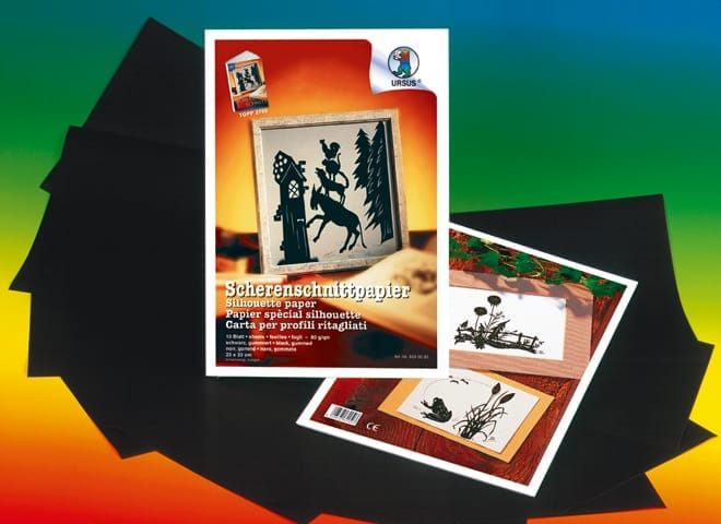 Entdecke unser Scherenschnitt-Papier für faszinierende Silhouetten. Das zweifarbig gefärbte Papier in tiefem Schwarz ist lichtecht und ideal für kreative Projekte.