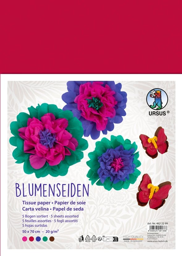 URSUS steht für hochwertige Bastelmaterialien und dieses Seidenpapier bildet da keine Ausnahme. Die Blumenseide ist von ausgezeichneter Qualität und einfach zu handhaben. Kreieren Sie mithilfe dieses Seidenpapiers individuelle und originelle Kunstwerke, die Ihre Persönlichkeit widerspiegeln.