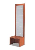 Erhältlich in Kirschholz-, heller Eichenoptik, Blau oder in Lichtgrau passt sich die Vitrine Flex nahtlos verschiedenen Einrichtungsstilen an. Das moderne und stilvolle Design wird durch die Lamellenwand- oder Lochwandsysteme ergänzt, die nicht nur dekorativ, sondern auch funktional sind.