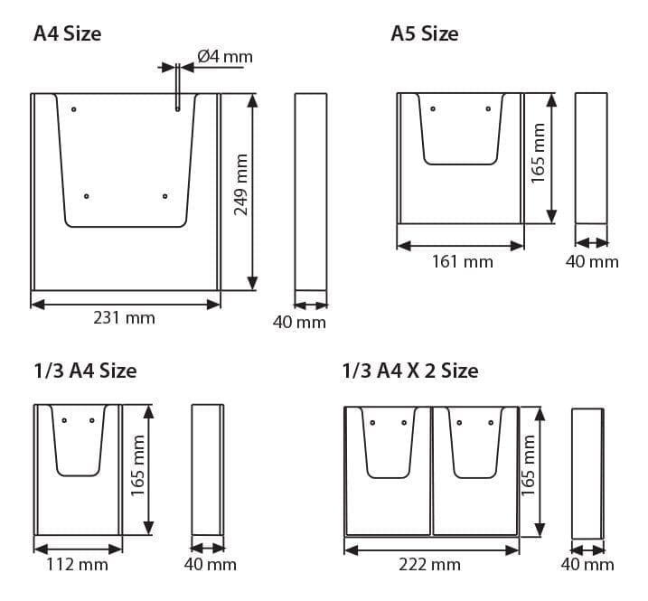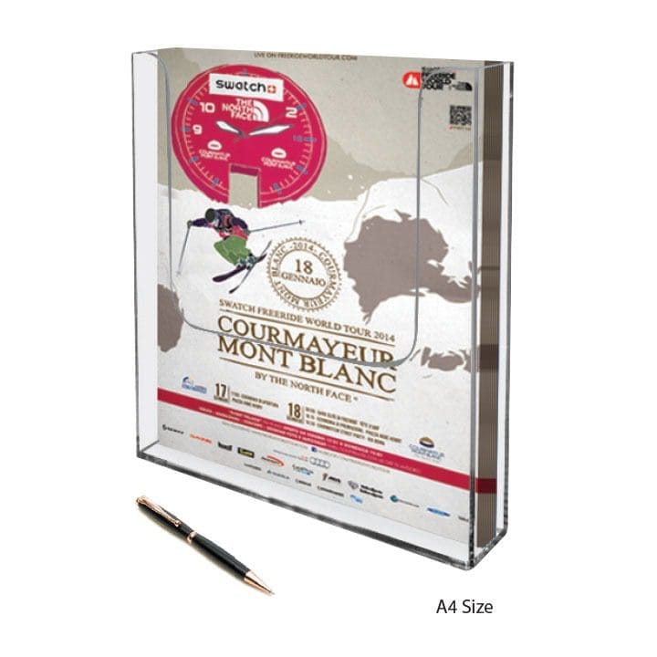 Wir bieten unseren Prospekthalter in drei verschiedenen Größen an, um sicherzustellen, dass Sie die perfekte Passform für Ihre Anforderungen finden. Egal, ob Sie Standardgrößen benötigen oder spezielle Abmessungen wünschen, um Ihren individuellen Bedürfnissen gerecht zu werden – wir sind flexibel und in der Lage, maßgeschneiderte Größen auf Anfrage zu produzieren.