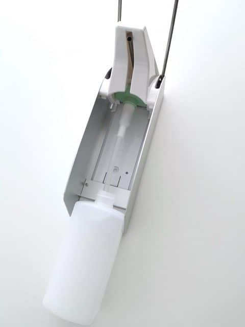 Der Spender Monda verfügt über einen Langarm, der die bequeme Entnahme von Desinfektionsmittel ermöglicht. Dieser Langarm sorgt dafür, dass die Hände während der Entnahme nicht mit dem Spender in Berührung kommen, was eine zusätzliche Hygieneebene schafft. Die praktische Handhabung des Spenders erleichtert den Nutzern die schnelle und effektive Desinfektion ihrer Hände.