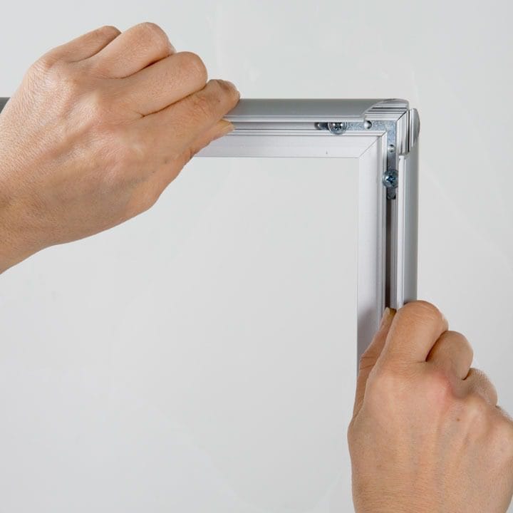 Mit unserem Wechselrahmen haben Sie die Möglichkeit, Ihre Poster oder Werbebotschaften schnell und einfach auszutauschen. Die leicht aufklappbaren Vorderprofile ermöglichen ein müheloses Wechseln der Inhalte, sodass Sie flexibel bleiben und Ihre Präsentationen im Handumdrehen anpassen können.