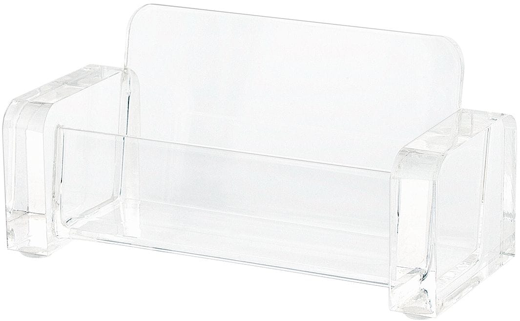 Machen Sie Eindruck mit dem CRISTALLIC Visitenkartenhalter aus hochwertigem Acrylglas. Das elegante Design wirkt leicht und modern, fast schwebend auf Ihrem Schreibtisch oder Empfangstresen. Die extrabreiten Acryl-Elemente reflektieren das Licht auf faszinierende Weise und verleihen diesem Visitenkartenhalter eine einzigartige und edle Optik.