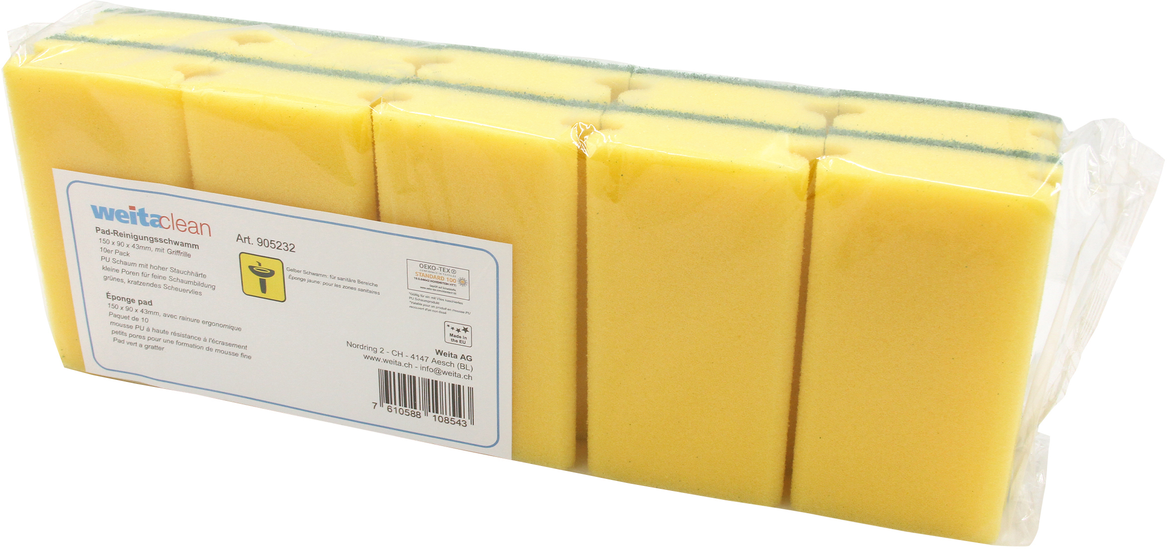 Der WEITACLEAN Padschwamm in der Grösse 152x85x43mm (Artikelnummer 5028029) ist die ideale Lösung für die gründliche und schonende Reinigung von Oberflächen. Mit einer auffälligen gelben Farbe und einer kratzenden Struktur ausgestattet, bietet dieser Padschwamm sowohl Effizienz als auch Benutzerfreundlichkeit.