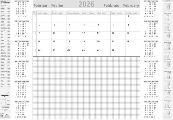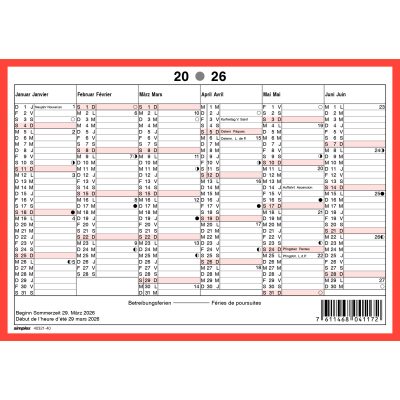 SIMPLEX Planograph 10 Stück 2026 40365.26 1J/1S DE/FR 64×29.6cm