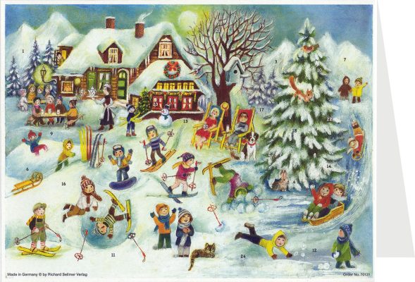 SELLMER Adventskalender A6 40131 Postkarte Skihütte