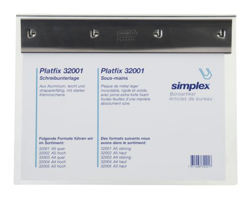SIMPLEX Schreibplatte Platfix 32003 aluminium, für A4 quer