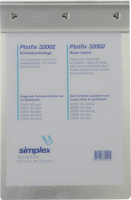 SIMPLEX Schreibplatte Platfix 32004 aluminium, für A4 hoch