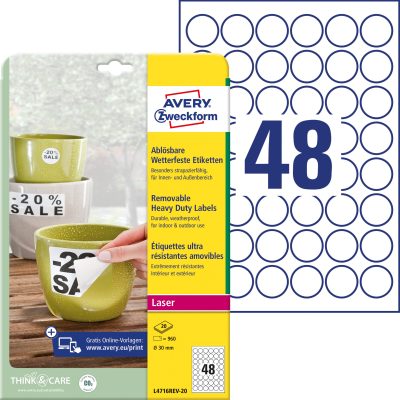 AVERY ZWECKFORM Etiketten Laser 30mm L4716REV2 weiss, non-perm. 20 Blatt