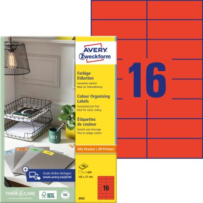 AVERY ZWECKFORM Etiketten 105×37mm 3452 rot 1600 Stück