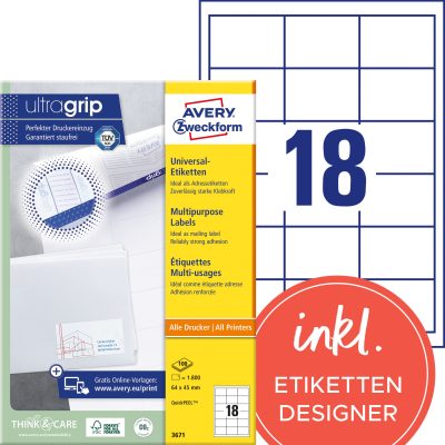 AVERY ZWECKFORM Etiketten 64x45mm 3671 weiss 1800 Stk./100 Blatt