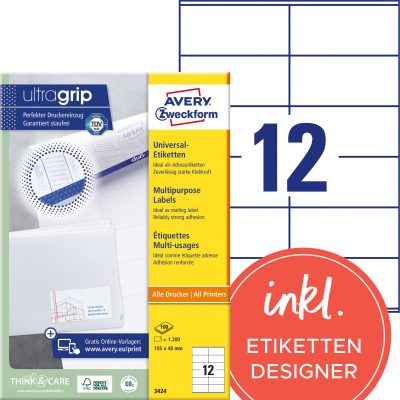AVERY ZWECKFORM Universal-Etiketten 105x48mm 3424 weiss 1200 Stk./100 Blatt