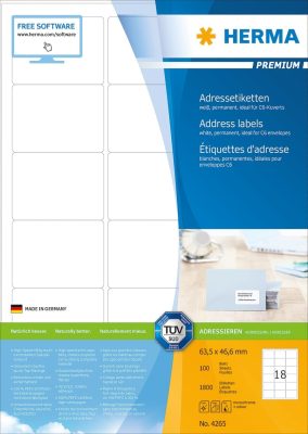 HERMA Etiketten PREMIUM 63.5×46.6mm 4265 weiss,perm. 1800 St./100 Bl.