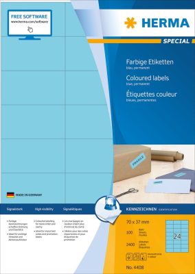 HERMA Etiketten SPECIAL 70x37mm 4408 blau,perm. 2400 St./100 Bl.
