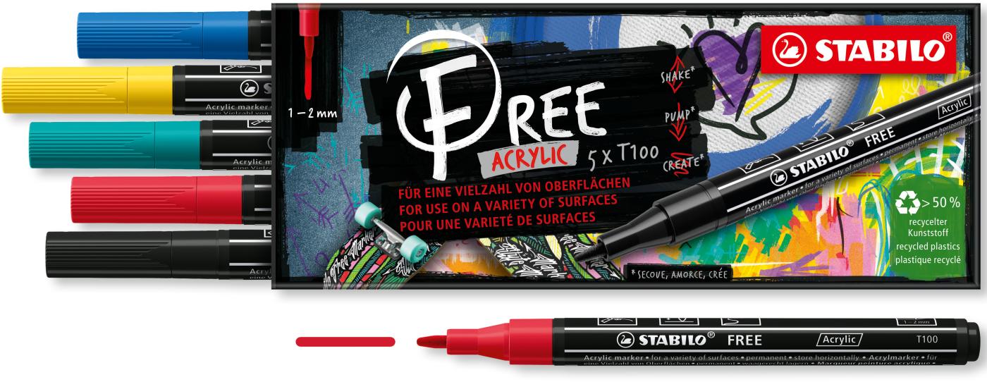 STABILO FREE Acrylic T100 1-2mm 691/5-01 Royal 5er Etui