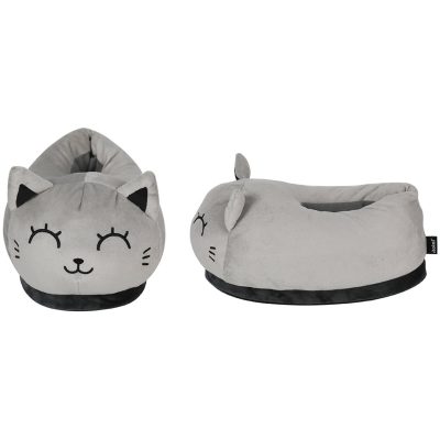 I-TOTAL Plüsch-Hausschuhe 30x19x18cm XL2845 Grey Cat