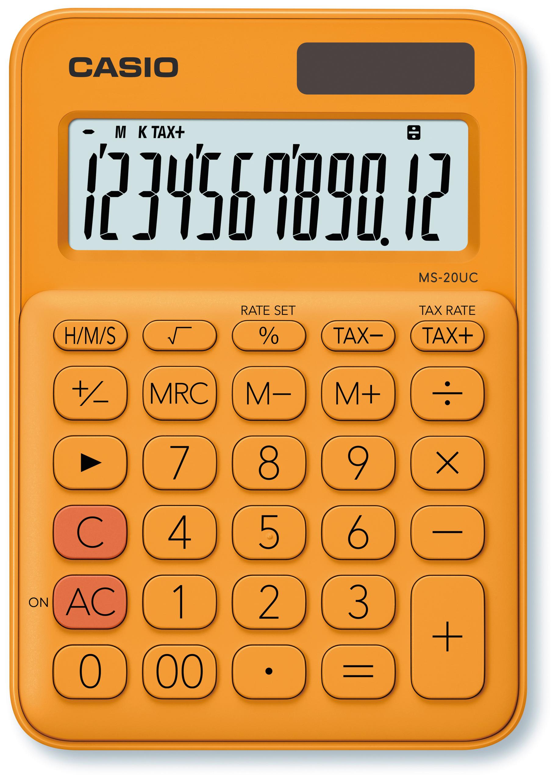 Der CASIO Mini Taschenrechner MS-20UC-RG-S ist ein kompakter und vielseitiger Begleiter für alle, die Wert auf präzise Berechnungen legen. Mit seinem ansprechenden orangefarbenen Design ist er nicht nur funktional, sondern auch ein echter Hingucker auf jedem Schreibtisch. Dieser Taschenrechner kombiniert Modernität mit Benutzerfreundlichkeit und ist ideal für den Einsatz in Schule, Büro oder zu Hause.