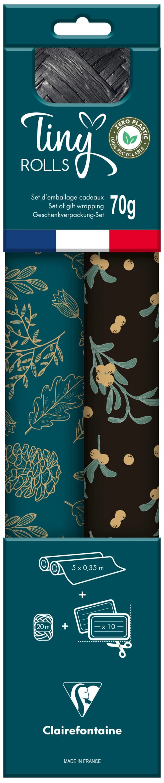 Das Tiny Rolls Set ist die ideale Lösung für alle, die umweltfreundlich verpacken wollen. Das Set besteht aus 2 Rollen Tiny Rolls, jeweils 5×0,35 Meter lang, einer Rolle Geschenkband aus Papier (20 Meter) und 10 vorgestanzten Geschenketiketten. Die Etiketten sind praktischerweise in die Rückseite der Verpackung integriert und lassen sich mühelos heraustrennen.