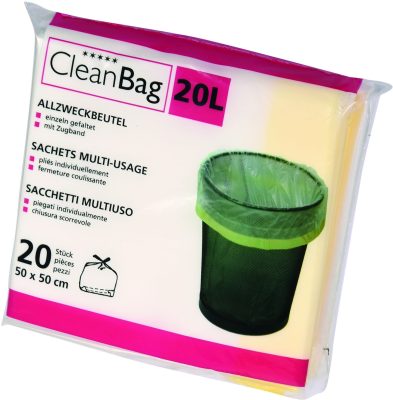 Ein besonderer Vorteil des Mehrzweckbeutels ist seine platzsparende Aufbewahrung. Die Beutel werden einzeln gefaltet geliefert, wodurch sie nur minimalen Stauraum benötigen. Zudem sorgt die Einzelverpackung für Hygiene und Sauberkeit, da jeder Beutel geschützt ist, bis er gebraucht wird.