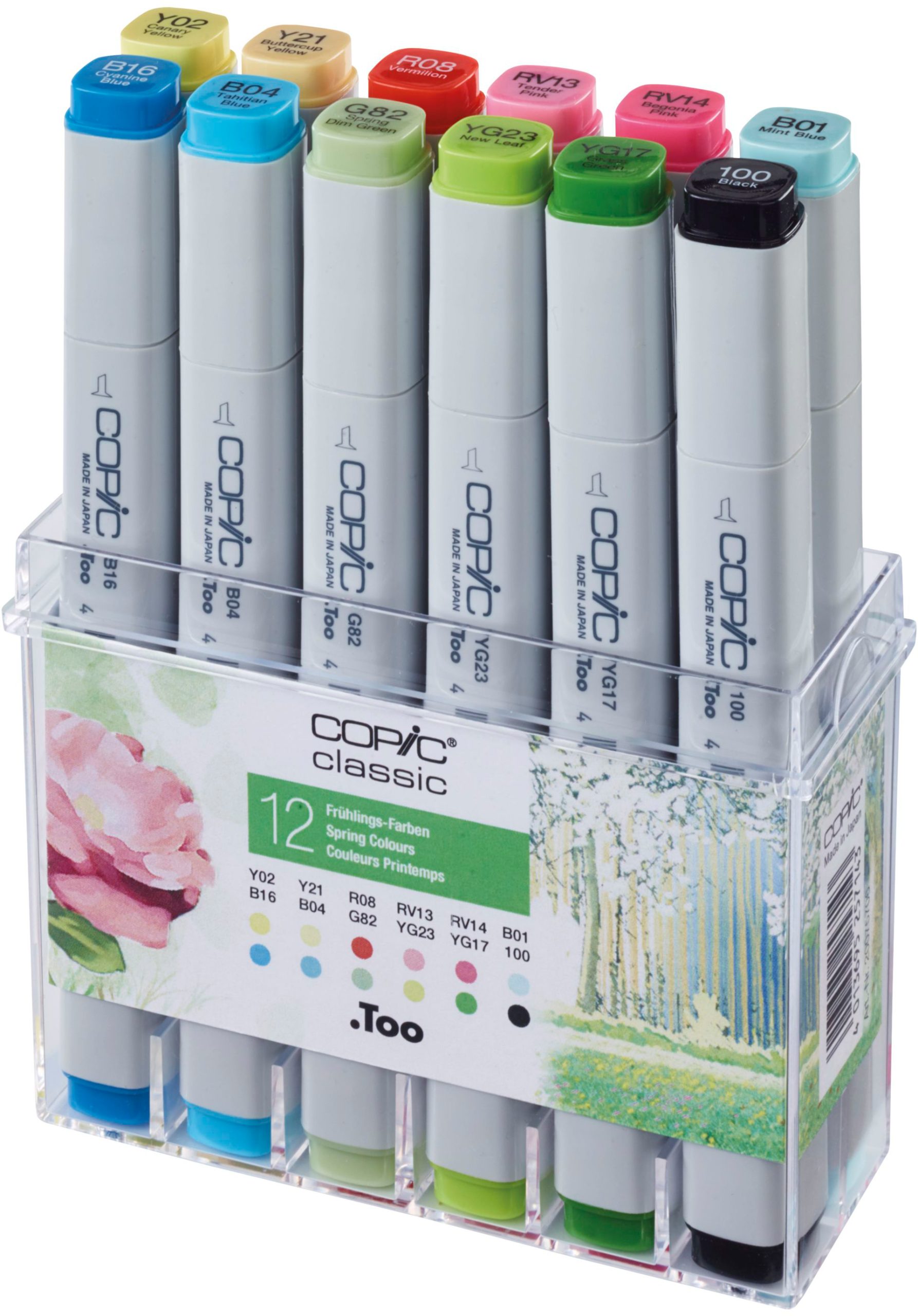 Der COPIC Marker Classic in den Frühlings-Farben ist das ideale Set für Kreative, die ihre künstlerischen Visionen zum Leben erwecken möchten. Mit insgesamt 12 sorgfältig ausgewählten Farben bietet dieses Set eine lebendige Palette, die perfekt für Illustrationen, Designs und kreative Projekte geeignet ist. Ob Sie ein professioneller Künstler, ein Hobbyist oder ein Schüler sind, diese Marker werden Ihre kreative Arbeit bereichern.