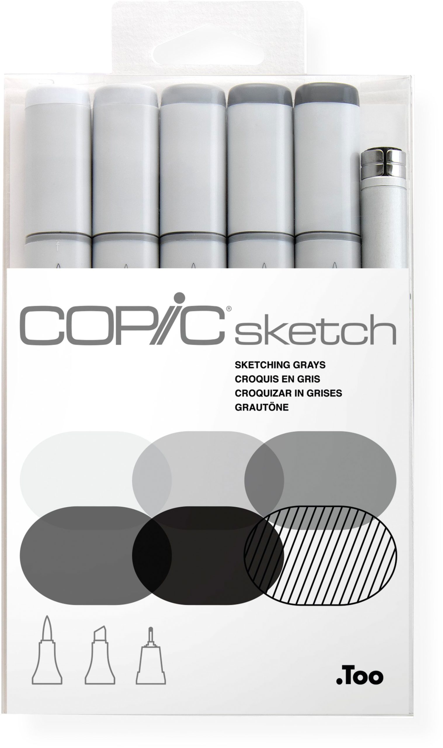 - 6 COPIC Sketch Marker in verschiedenen Grautönen