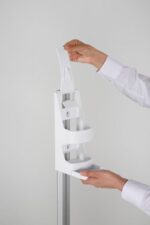 Der Naba Desinfektionsspender zeichnet sich durch seinen verstellbaren Ständer aus, der es ermöglicht, den Spender auf die gewünschte Höhe einzustellen. Diese Anpassbarkeit ist besonders praktisch, da sie es Menschen aller Größen und Altersgruppen ermöglicht, den Spender bequem zu verwenden, ohne sich verrenken oder bücken zu müssen. Diese komfortable Höheneinstellung ist besonders in öffentlichen Räumen oder Unternehmen von Vorteil, wo der Spender von vielen Menschen genutzt wird.