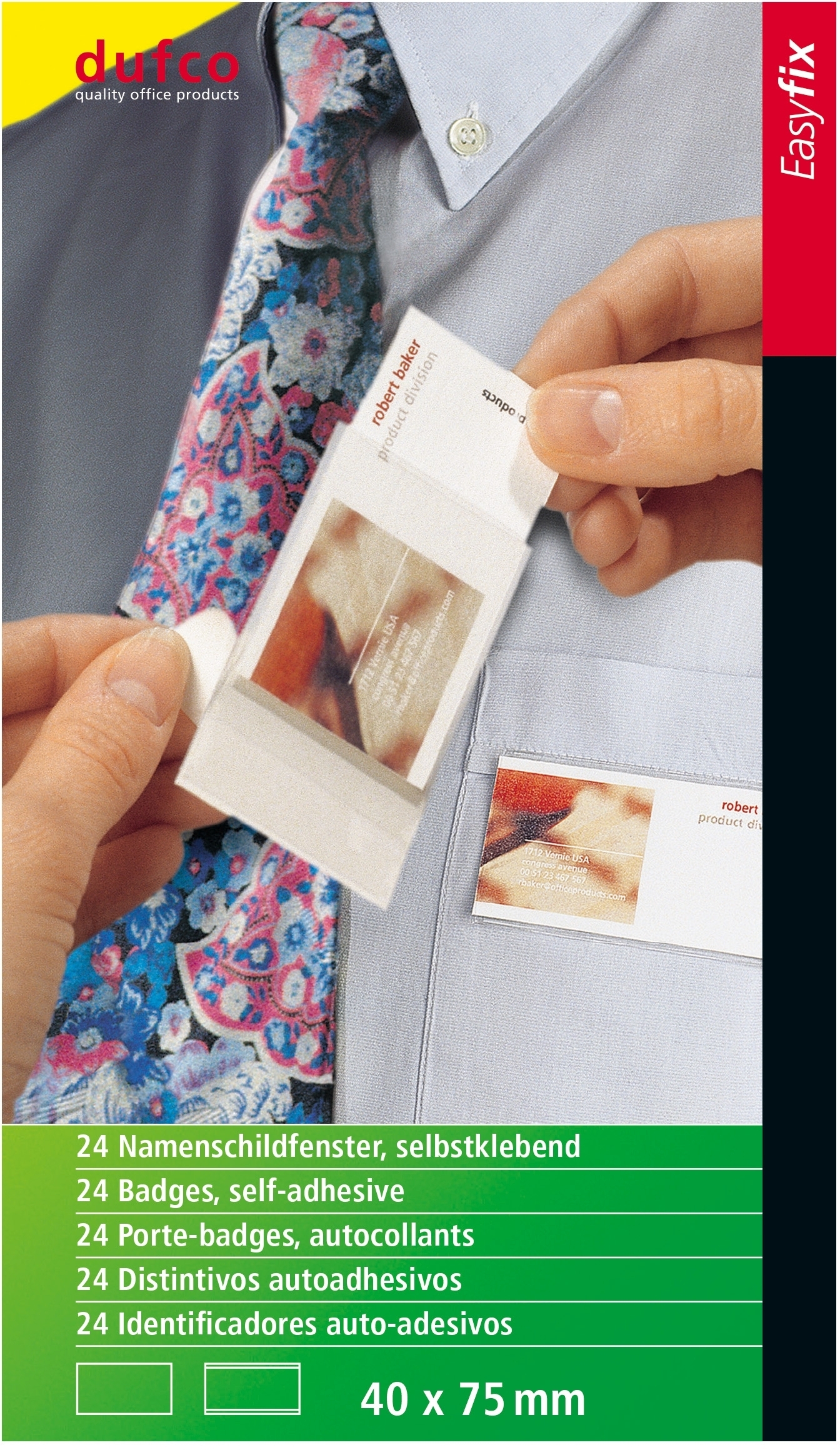 Die DUFCO Namensschilder 53001.44 sind die ideale Lösung für alle, die eine klare und professionelle Identifikation benötigen. Mit einer Grösse von 40×75 mm bieten diese Namensschilder ausreichend Platz für Namen, Titel und Unternehmenslogos, um eine ansprechende Präsentation zu gewährleisten. Jedes Set enthält 24 Namensschilder, die sich perfekt für verschiedene Anlässe eignen.