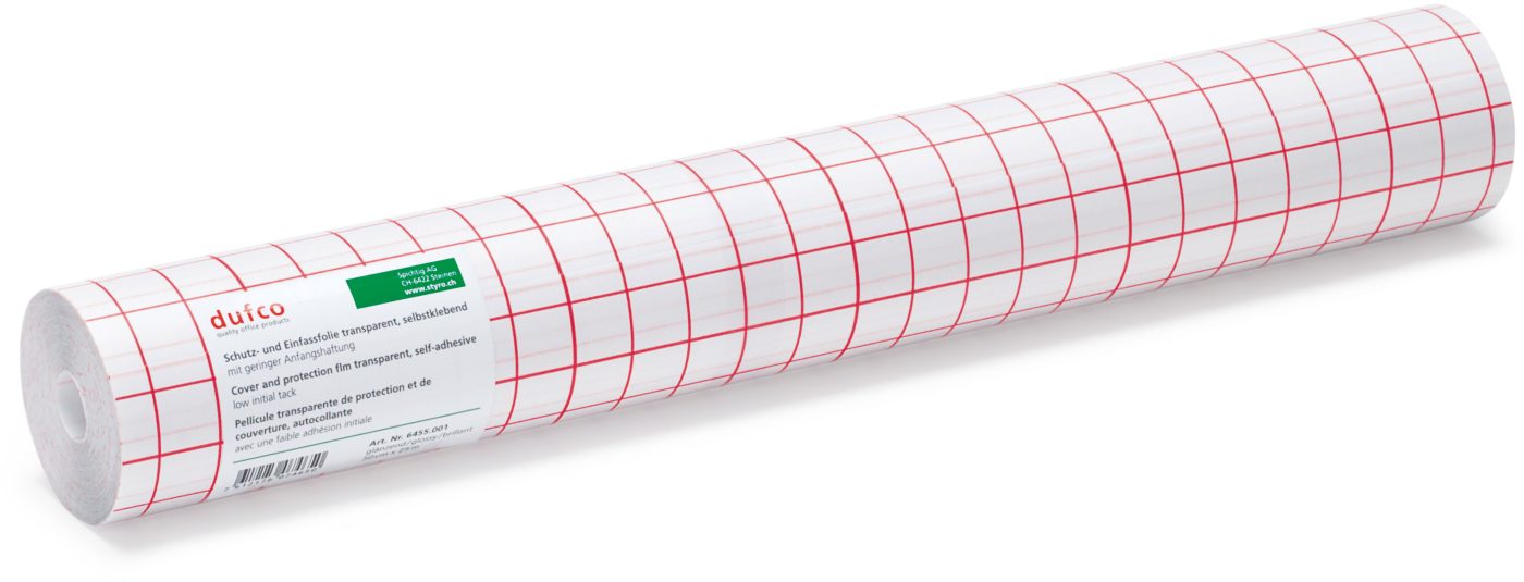 Die DUFCO Selbstklebefolie 35x500cm 6459.001 ist eine glasklare, glänzende PVC-Folie, ideal für kreative Bastelprojekte und zum Schutz von Oberflächen.