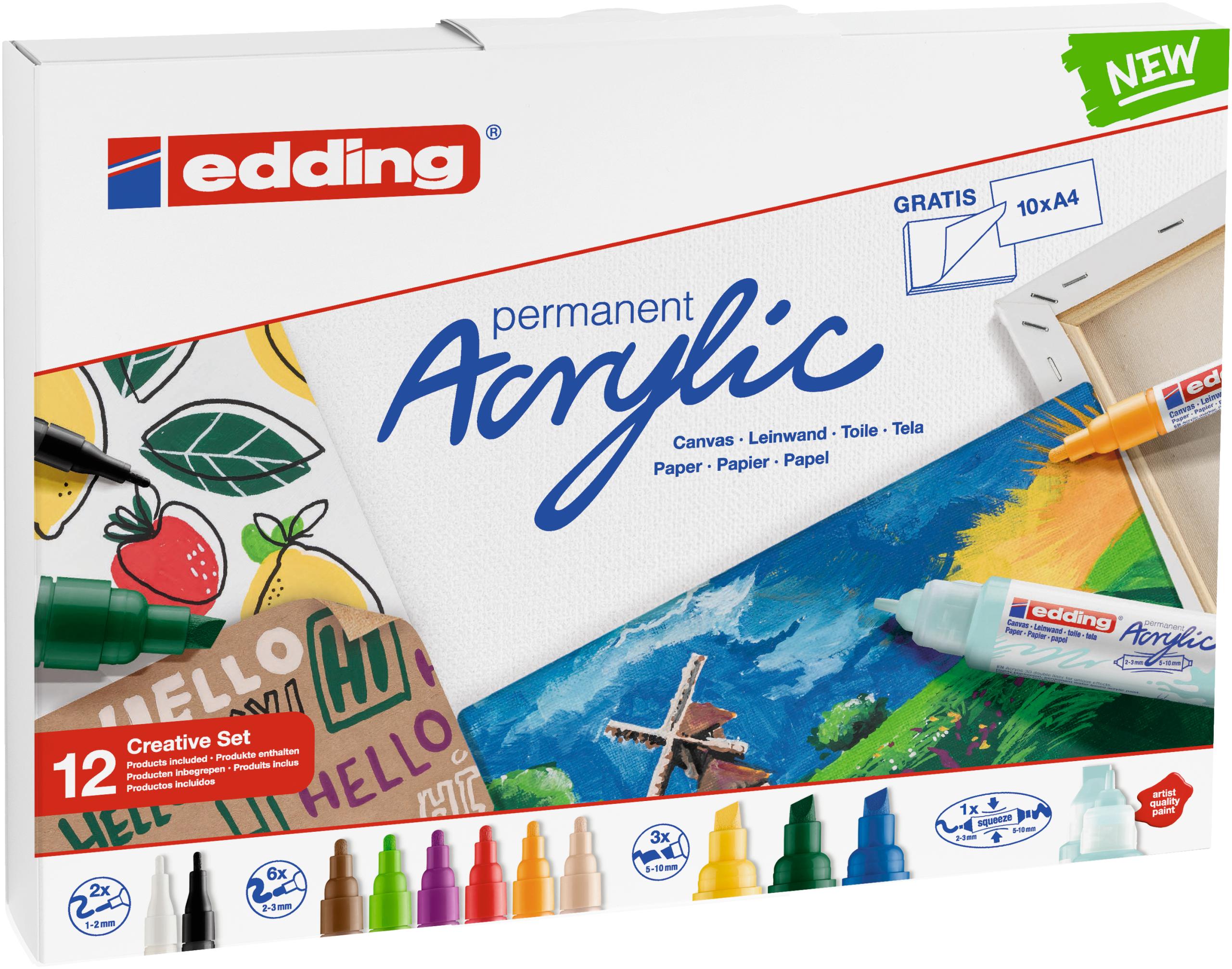Entdecken Sie die Welt der Farben und lassen Sie Ihrer Kreativität freien Lauf mit dem EDDING Acrylmarker acrylic-12S Kreativset basic. Ob zum Zeichnen, Malen oder Dekorieren – diese Marker sind die perfekte Ergänzung für Ihre kreative Ausstattung!