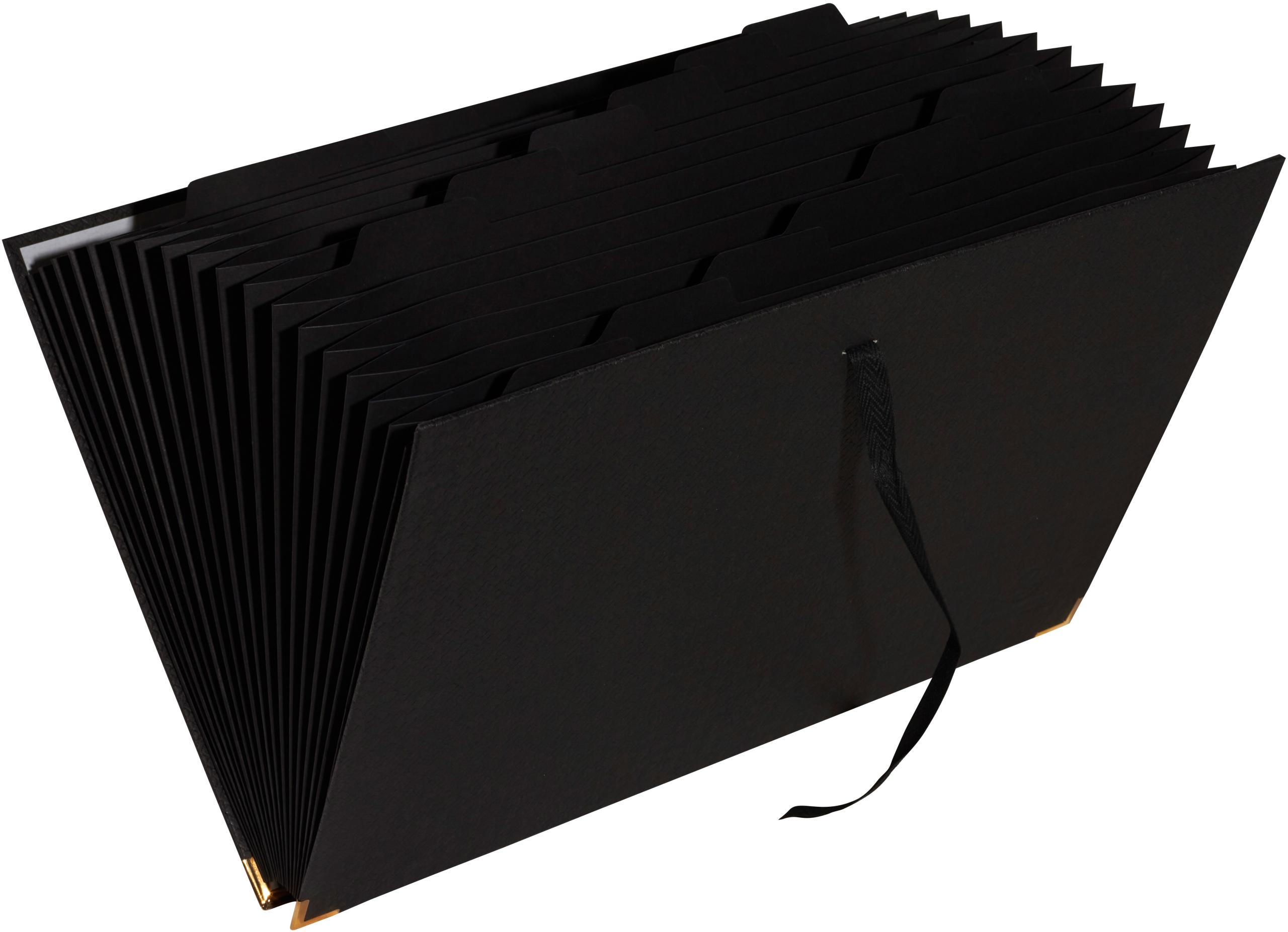 Die Fächermappe besteht aus hochwertigem, stabilem Kunststoff, der nicht nur leicht, sondern auch robust ist. Die widerstandsfähige Oberfläche sorgt dafür, dass die Mappe auch bei täglichem Gebrauch lange hält und vor Abnutzung geschützt ist. Die elegante schwarze Farbe verleiht der Fächermappe ein professionelles Aussehen, das in jedem Umfeld gut zur Geltung kommt.