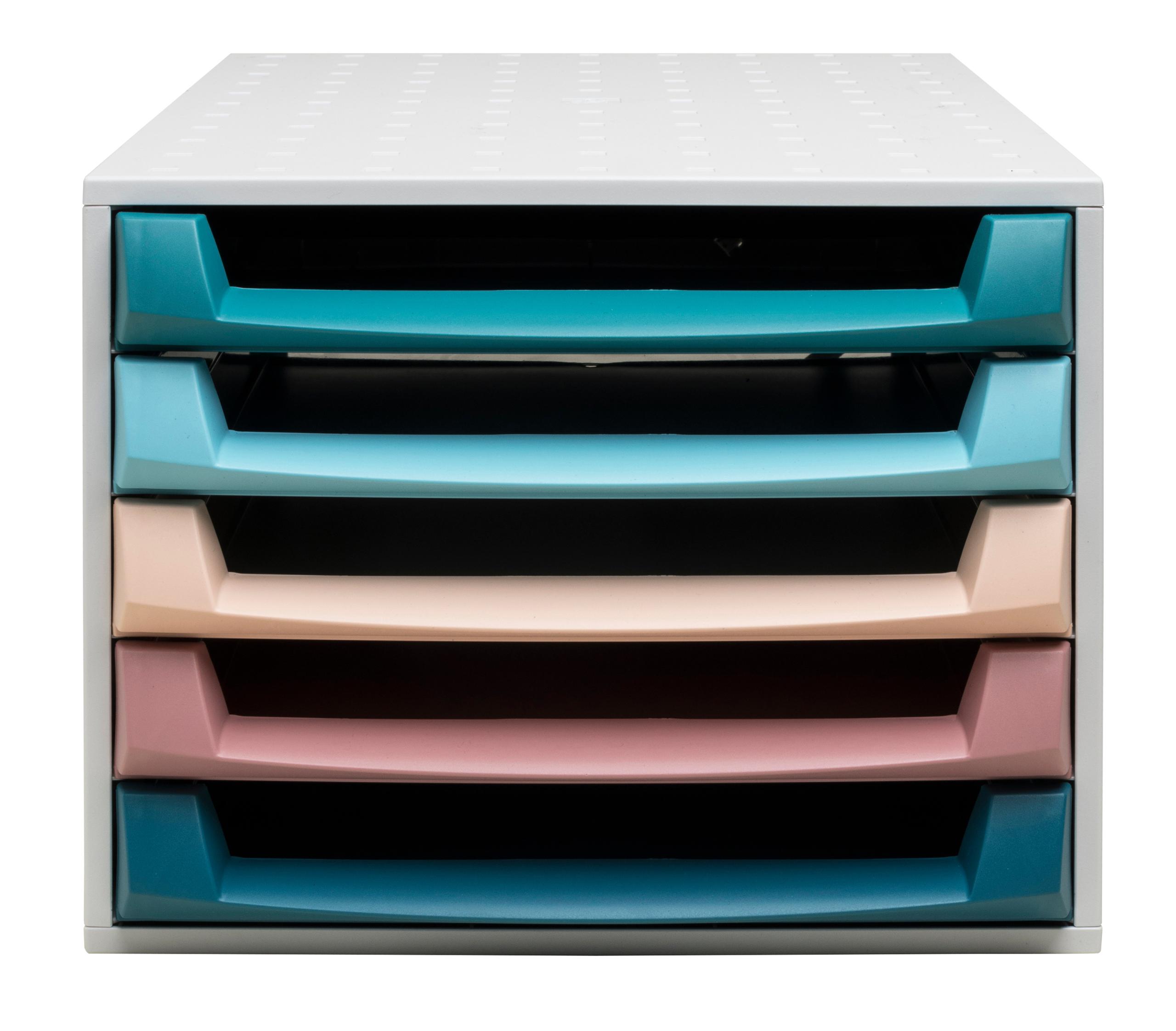 Mit ihrem modernen skandinavischen Design fügt sich die EXACOMPTA Schubladenbox nahtlos in jede Büroeinrichtung ein. Die schlichten Linien und die sanften Farben sorgen für eine ansprechende Optik, die sowohl funktional als auch stilvoll ist. Die fünf Schubladen bieten ausreichend Platz für die Ablage von Unterlagen, Notizen, Stiften und weiteren Utensilien. Durch die transparente Front der Schubladen haben Sie jederzeit einen schnellen Überblick über den Inhalt, was die Effizienz in Ihrem Arbeitsalltag steigert.