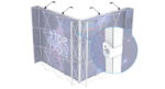 Mit geraden- oder Eckverbindern können verschiedene Elemente des soft expo fusion Systems miteinander verbunden werden, um große Wände oder komplette Messestände zu kreieren. Diese Flexibilität ermöglicht es, das System an unterschiedliche Anforderungen und Raumgrößen anzupassen, um ein maßgeschneidertes Erlebnis zu schaffen.