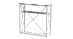 Die soft expo fusion_counter Falttheke ist mit einer inkludierten Ablage ausgestattet, die Ihnen zusätzlichen Stauraum bietet. Mit den Maßen von 104 x 38 x 102 cm (BxTxH) bietet die Theke genügend Platz für Ihre Präsentationsmaterialien und Werbebotschaften. Der Aufbau ist unkompliziert und ohne Werkzeug möglich.