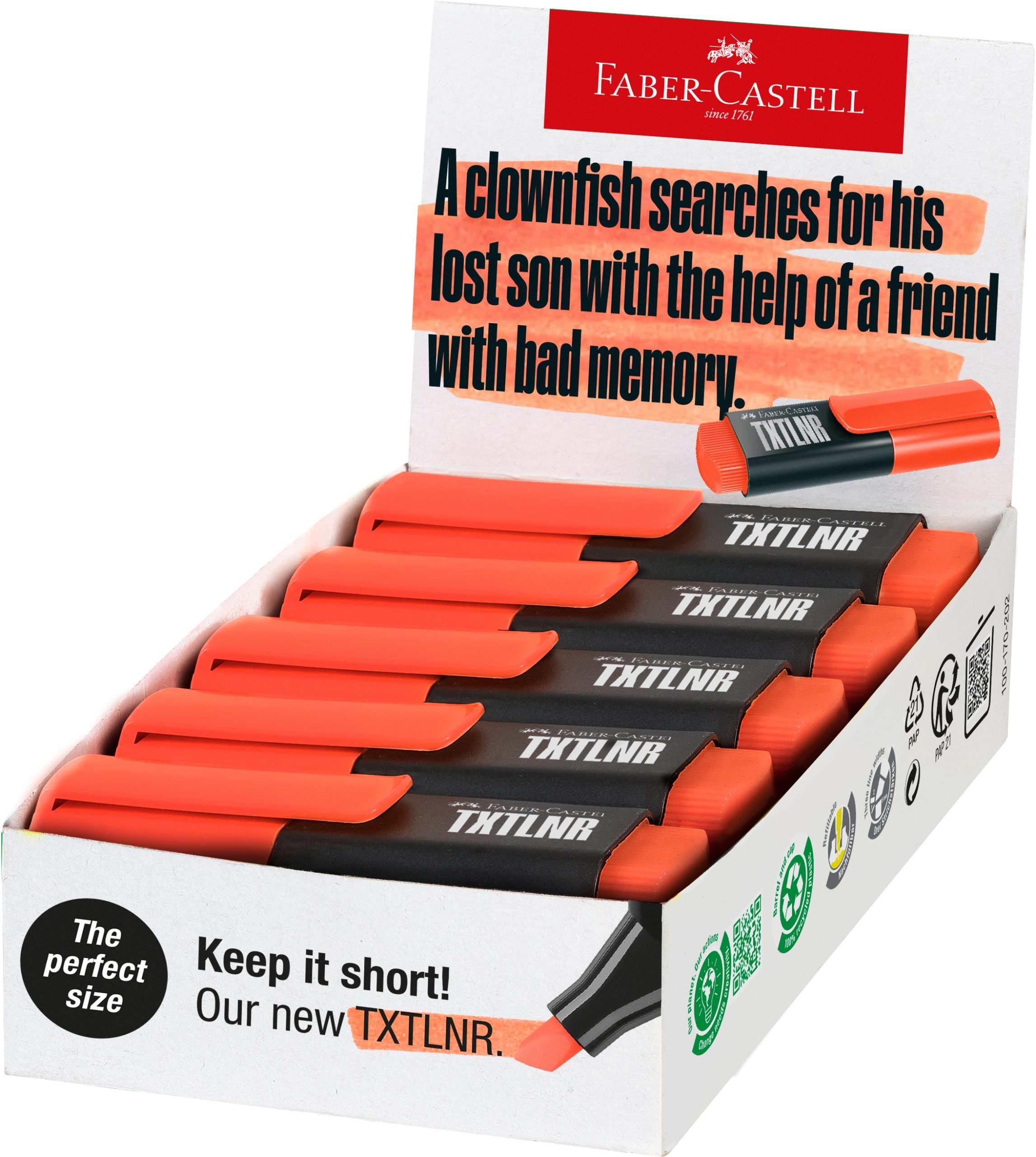 Der FABER-CASTELL Textmarker TXTLNR SF 154215 in der lebhaften Farbe Orange ist der ideale Begleiter für alle, die Texte hervorheben und wichtige Informationen effizient markieren möchten. Ob im Büro, in der Schule oder zu Hause, dieser Textmarker vereint Funktionalität mit einem ansprechenden Design.